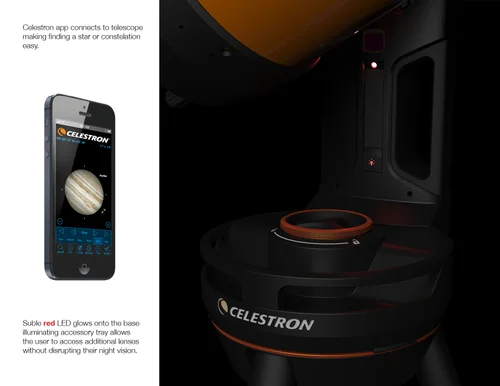 The Celestron Evolution 8 telescope has integrated wifi that allows a new user to explore the universe with a tap of their smartphone or tablet. The Evolution 8 can also be used in manual mode by unlocking 2 large manual controls that adjust azimuth and altitude. This allows the telescope to grow with the users knowledge of the solar system.